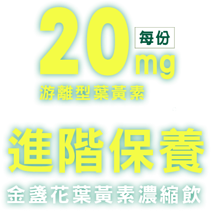 日常飲食可從蔬菜輕鬆攝取 10 毫克葉黃素,再依個人行動裝置使用頻率,補充葉黃素 8~20 毫克,可符合衛福部建議每日不應攝取超過 30 毫克。金盞花葉黃素濃縮飲,適合進階保養;日常保養推薦葉黃素功能飲,更重要是有經過實驗證實,晶亮度提升,安心有保障。